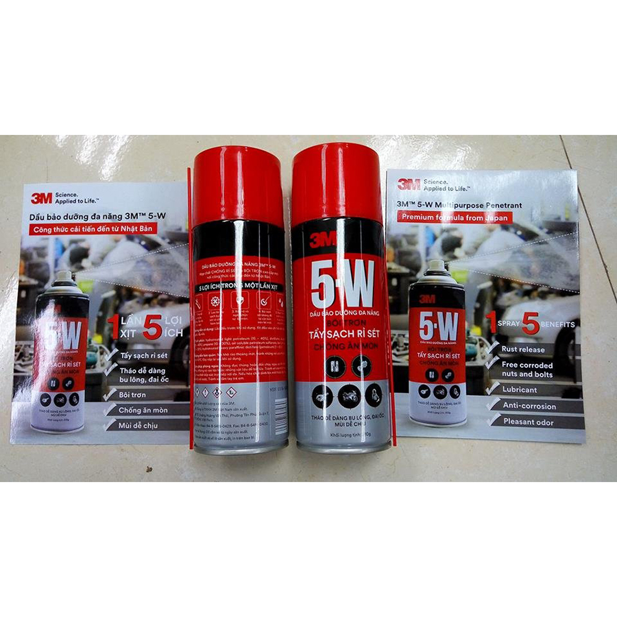 Dầu bôi trơn chống rỉ sét đa năng 3M 5-W5-W và ưu việt của sản phẩm5-W với lực xịt mạnh, các phân tử li ti lan tỏa và thấm sâu trên bề mặt kim loại làm tăng diện tích tiếp xúc. Với đặc tính thẩm thấ...