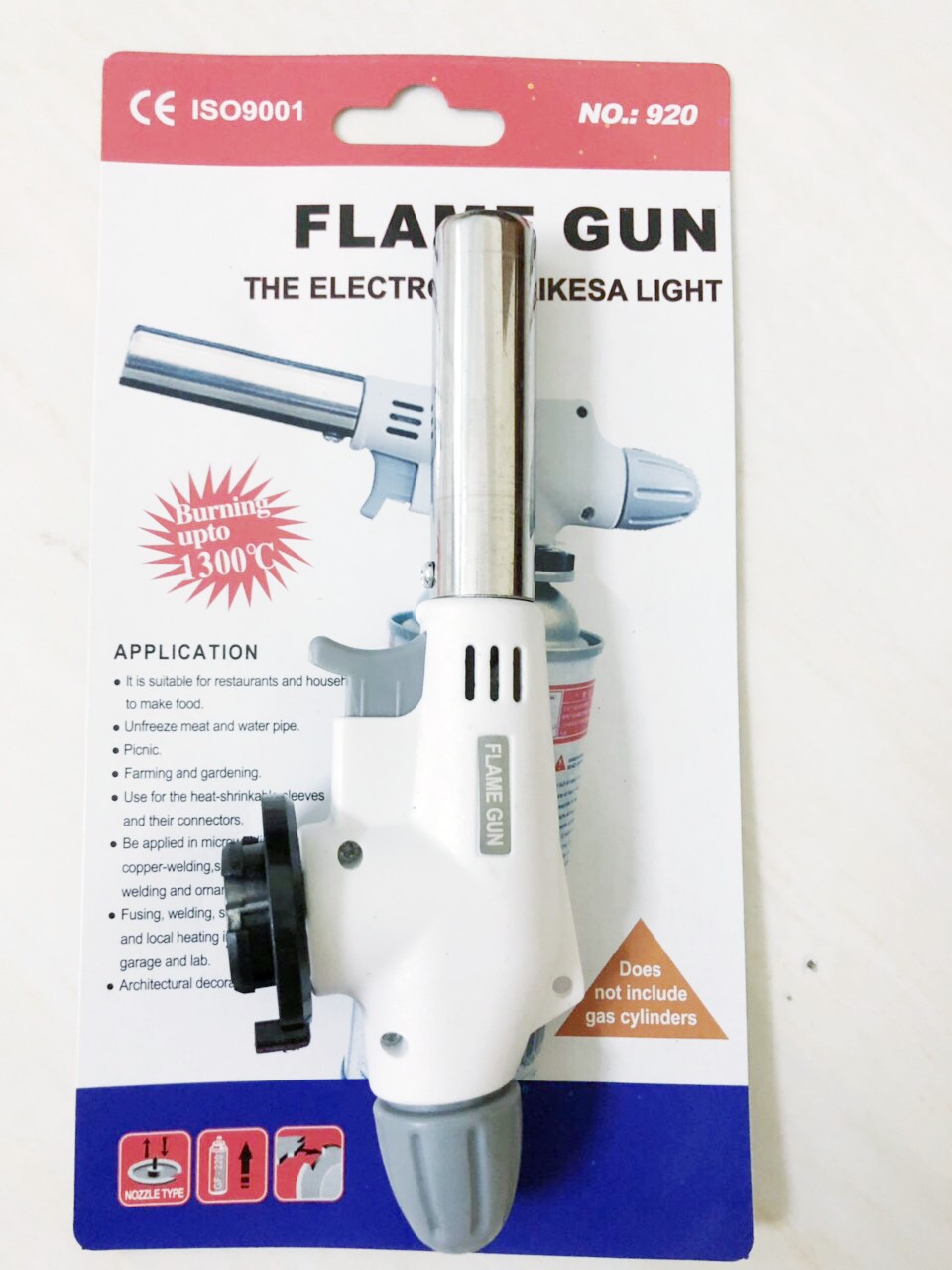 Đầu khò gas, đánh lửa tự động, có thể điều chỉnh được nhiệt độ cũng như ngọn lửa nơi đầu khò Tính năng một push button, có thể làm nóng lên đến 1300 độ C.