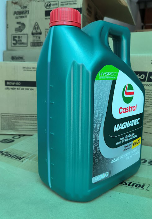SAE: 5W-30 DẦU GỐC: Dầu công nghệ tổng hợp toàn phần Castrol MAGNATEC 5W-30 khuyến nghị cho động cơ xăng. Quy cách đóng gói: Thùng 6 can, 4 lít/can