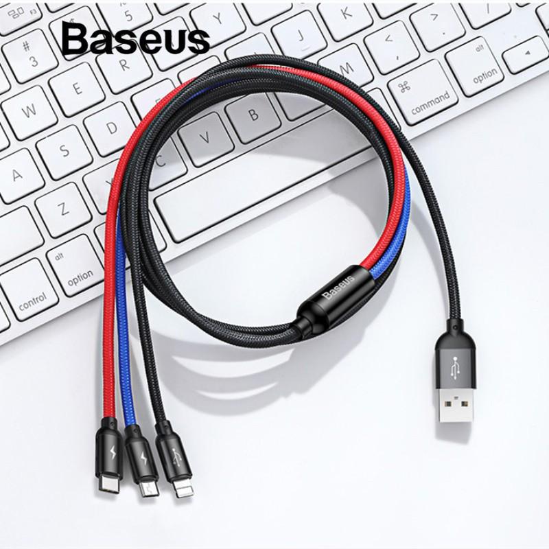 ✨Dây cáp sạc Baseus 3 trong 1 tiện lợi dành cho điện thoại iPhone và các dòng Android -Hàng CHính Hãng