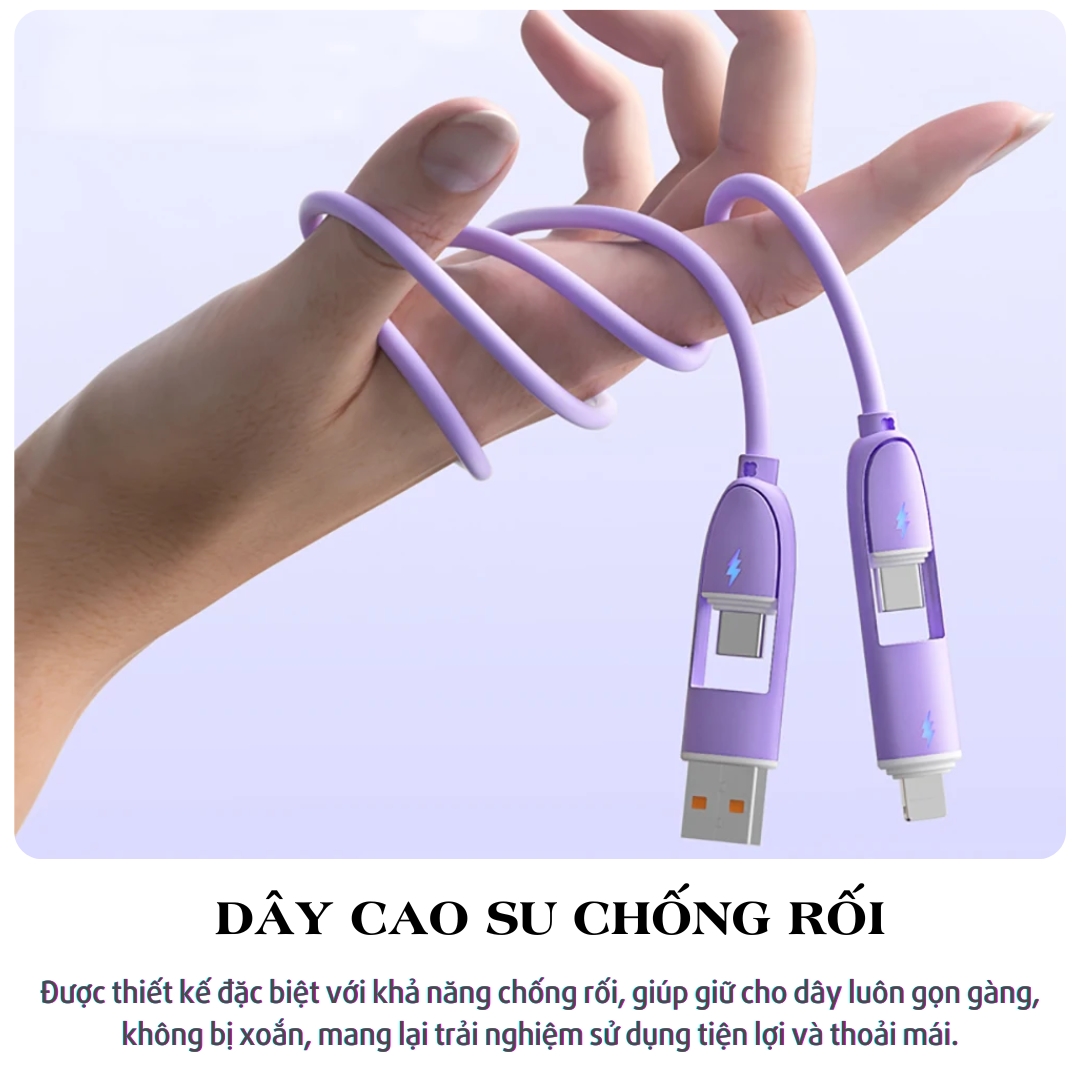 Ứng dụng thực tế / Ưu điểm nổi bật: Dễ dàng sạc mọi thiết bị chỉ với 1 bộ cáp   Không cần mang nhiều dây khi đi công tác hoặc du lịch   Cắm