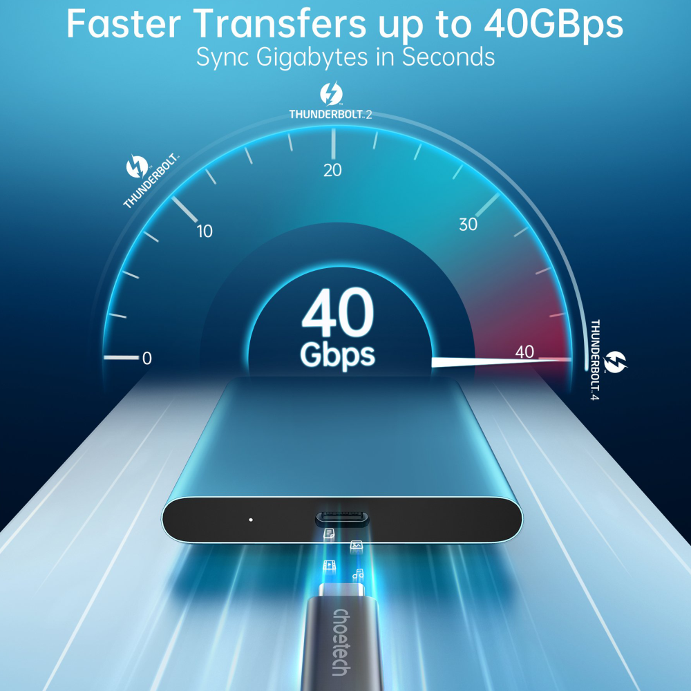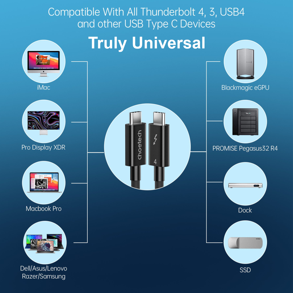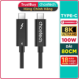 ✨Dây Cáp Thunderbolt 4 Chuẩn Intel CHOETECH A3010-BK Dài 0.8M, 40Gbps, Sạc PD 100W, 8K 60Hz, 5K 60Hz, 4K 60Hz Kép - Hàng Chính Hãng