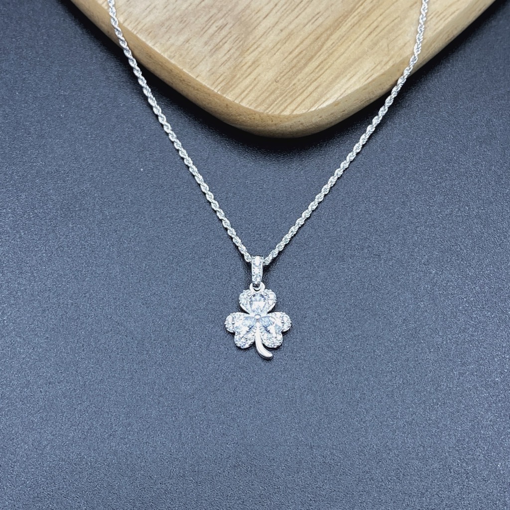 Dây chuyền DCJ67 cỏ 3 lá đính đá sắc màu bạc 925 ChariotJewelry