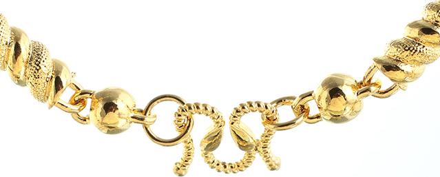 Với thiết kế sang trọng, những mắt xích với đường vân tỉ mỉ, dây chuyền mạ vàng 24k tạo sự mạnh mẽ nhưng không quá cứng nhắc.