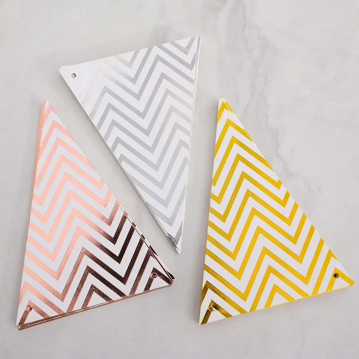 Dây Cờ Tam Giác Ánh Kim Trang Trí Sinh Nhật ➤ Tên sản phẩm: Dây Cờ Treo Trang Trí Tiệc ➤ Chất liệu: Bìa cứng ,Có loại có ánh kim ➤ Số lượng mảnh: 12