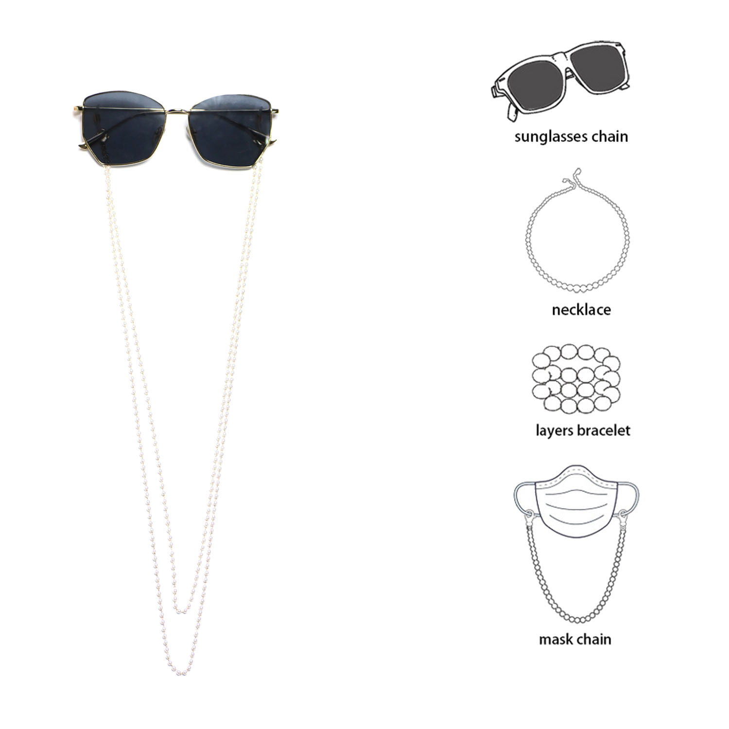 Dây đeo gọng kính thời trang chống rơi vỡ thất lạc, dây chuyền đeo tai nghe airpod sành điệu, chuỗi đeo khẩu trang chống rơi rớt, có thể mix như dây chuyền vòng cổ đa