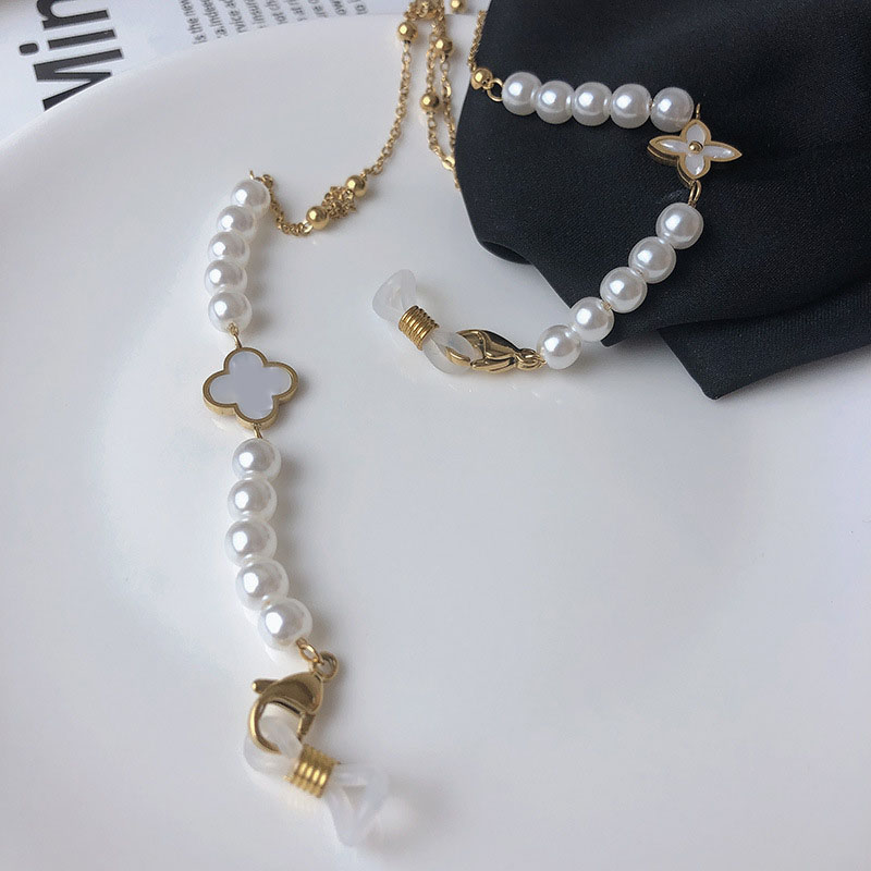 ✨Dây kính glasses cỏ bốn lá may mắn bất đối xứng chuỗi đeo khẩu trang hạt ngọc nhỏ thanh lịch ấn tượng trend idol