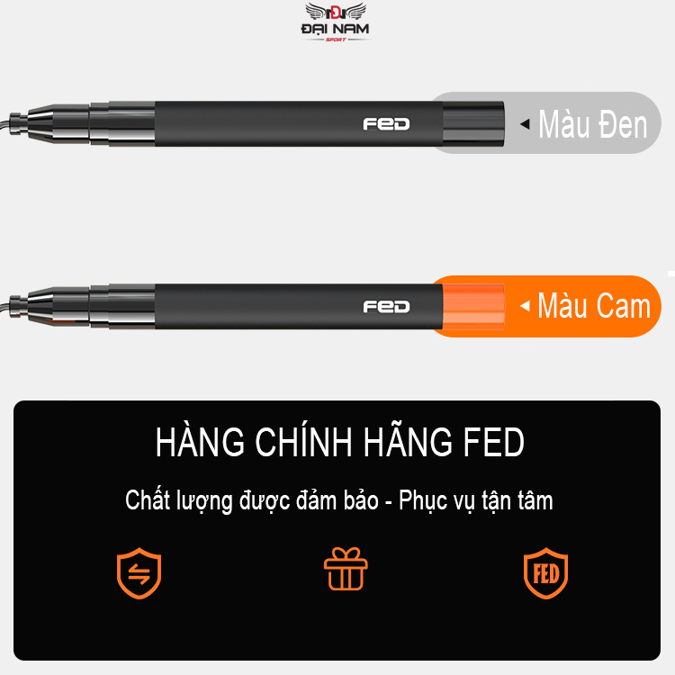 - Chất liệu dây nhảy thể dục FED – XM0105 được làm bằng kim loại thép không gỉ và đi kèm với cáp nhảy có thể thay thế 2 10 ft. Trong khi đó, dây cáp được bọc bằng polyme có chất lượng cao, trọng lượng nhẹ, bền và giảm ma sát. CAM KẾT VỚI KHÁCH HÀNG KHI MUA TẠI ĐẠI NAM SPORT.