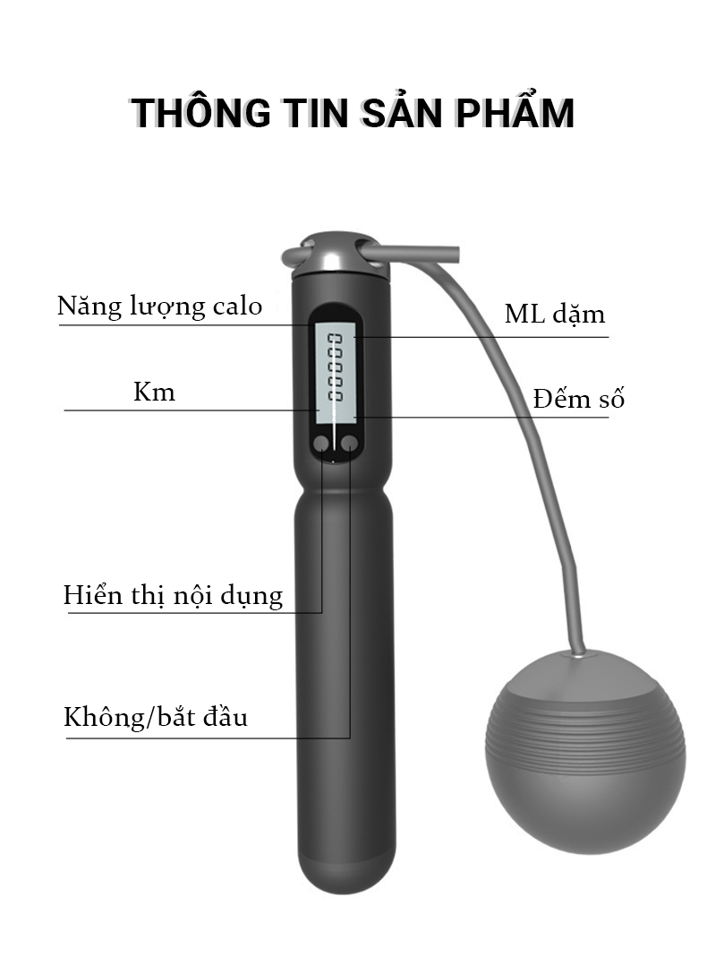 Mô Tả Sản Phẩm: Tên: Dây nhảy đo calo không dây 3in1, dây nhảy có dây đếm số vòng, tính calo, quãng đường tập thể dục, tăng thể lực Thông số kỹ thuật Dây nhảy