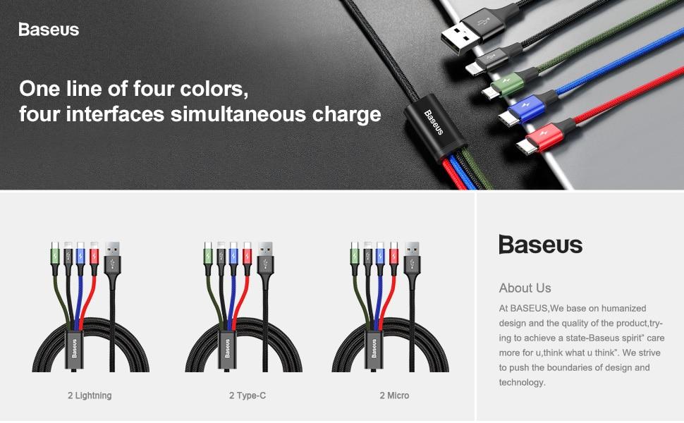 Thông tin chi tiết Cáp sạc đa năng Baseus Rapid Series 4 IN 1 Type-C, 2 Lightning, Micro USB cho iPhone/ iPad, Smartphone & Tablet Android (3.5A, 1.2M, Fast charge 4 in 1 Cable)