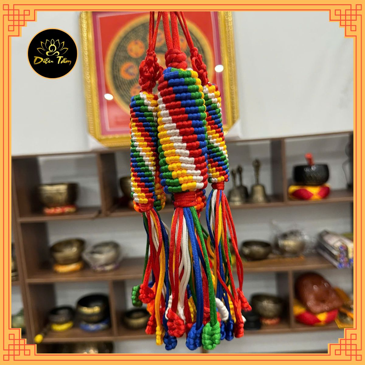 ✨Dây treo chỉ ngũ sắc cát tường thủ công Tây Tạng may mắn bình an trang trí treo xe, móc khóa ban thờ Mật Tông