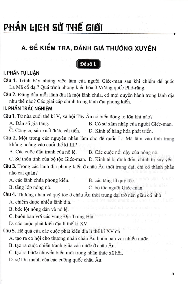 Những đề kiểm tra, đánh giá năng lực Lịch sử lớp 7 được sắp xếp theo thứ tự lịch sử thế giới và lịch sử Việt Nam chứ không theo phân phối chương trình của từng học kì. Vì đây là tài liệu tham khảo phục vụ dạy học chứ không phải hệ thống các đề mẫu.