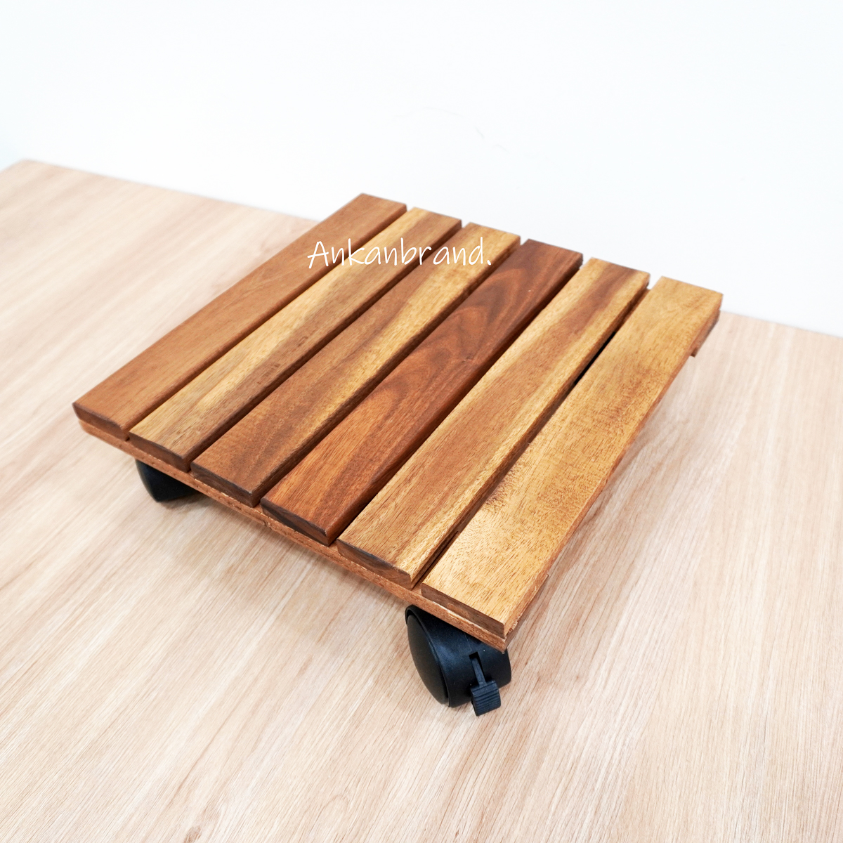 ƯU ĐIỂM ĐẾ LÓT CHẬU CÂY CÓ BÁNH XE ANKAN ★ Gỗ tràm bông vàng được chọn từ gỗ nguyên, gỗ mới, ít mắt gỗ và được gia công tỉ mĩ, ít trầy xướt. ★ Xử lý 2