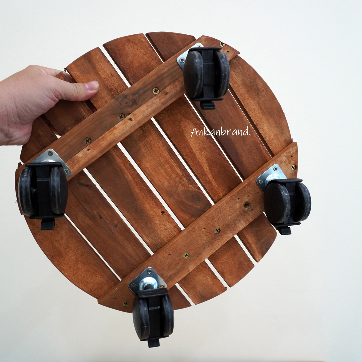 ƯU ĐIỂM ĐẾ LÓT CHẬU CÂY CÓ BÁNH XE ANKAN ★ Gỗ tràm bông vàng được chọn từ gỗ nguyên, gỗ mới, ít mắt gỗ và được gia công tỉ mĩ, ít trầy xướt. ★ Xử lý 2