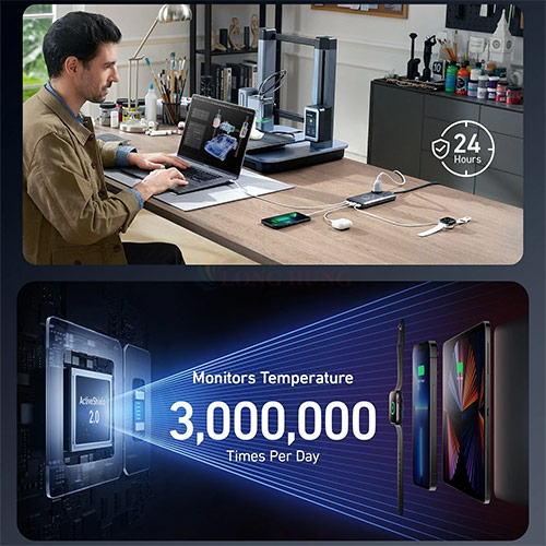 - Là sản phẩm đa năng, sạc được cho nhiều thiết bị cùng lúc, gồm cả dòng Android, TypeC như Samsung, HTC, Xiaomi, Huawei, và cả dòng như iPhone, iPad với chuẩn 8