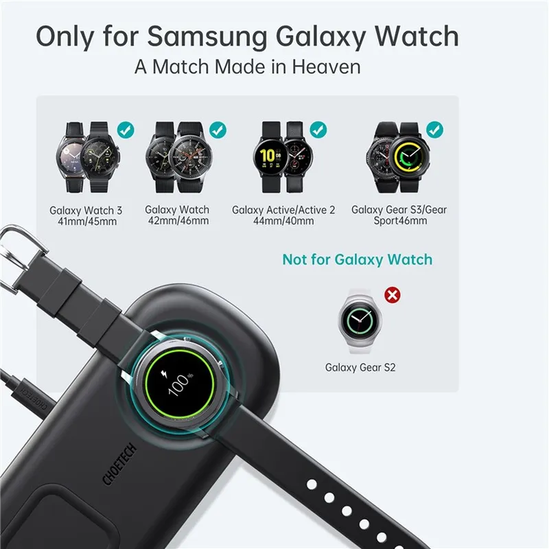 Một mặt của đế sạc không dây (silicone tròn) này được thiết kế đặc biệt cho đồng hồ thông minh Galaxy và tương thích với Galaxy Watch 3 41mm/45mm/42mm/46mm, Active, Gear S3 frontier. Bạn có thể sạc đồng thời đồng hồ và điện thoại, ẩn các dây cáp dài dư thừa, làm cho bàn làm việc hoặc tủ đầu giường của bạn trở nên gọn gàng và ngăn nắp. Nó trông tuyệt vời ở bất cứ nơi nào bạn sử dụng ― phòng ngủ, phòng làm việc, hội trường hoặc bàn làm việc trong văn phòng của bạn.