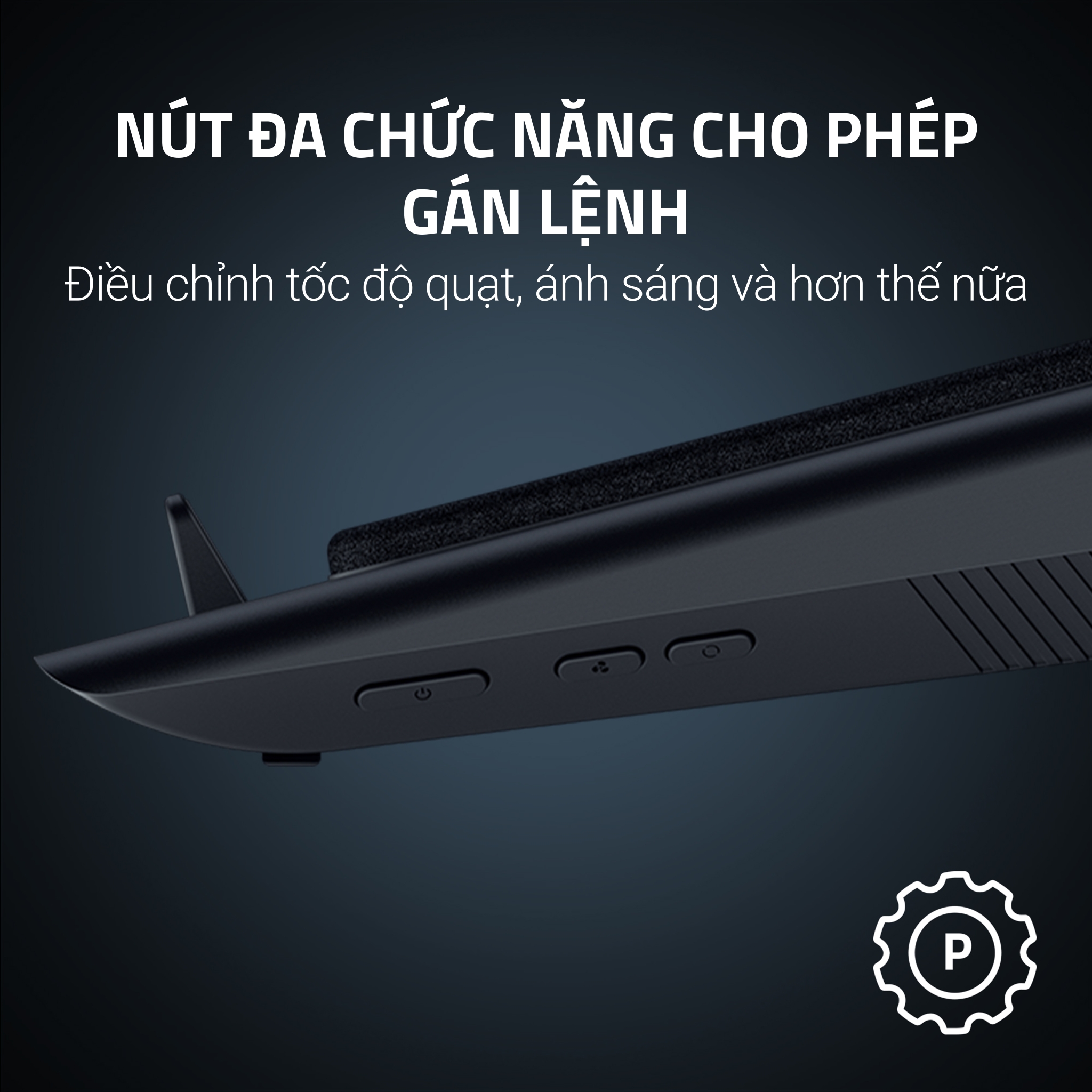 Đế tản nhiệt Razer Laptop Cooling Pad RC21-02300100-R3GW hỗ trợ đồng bộ ánh sáng RGB Chroma 16.8 triệu màu, cho phép bạn cá nhân hóa không gian chơi game theo phong cách riêng. Phần mềm Razer Synapse giúp bạn dễ dàng tùy chỉnh hiệu ứng đèn, thiết lập tốc độ quạt và lưu cấu hình chỉ với vài cú click, mang lại trải nghiệm sử dụng trực quan và linh hoạt.