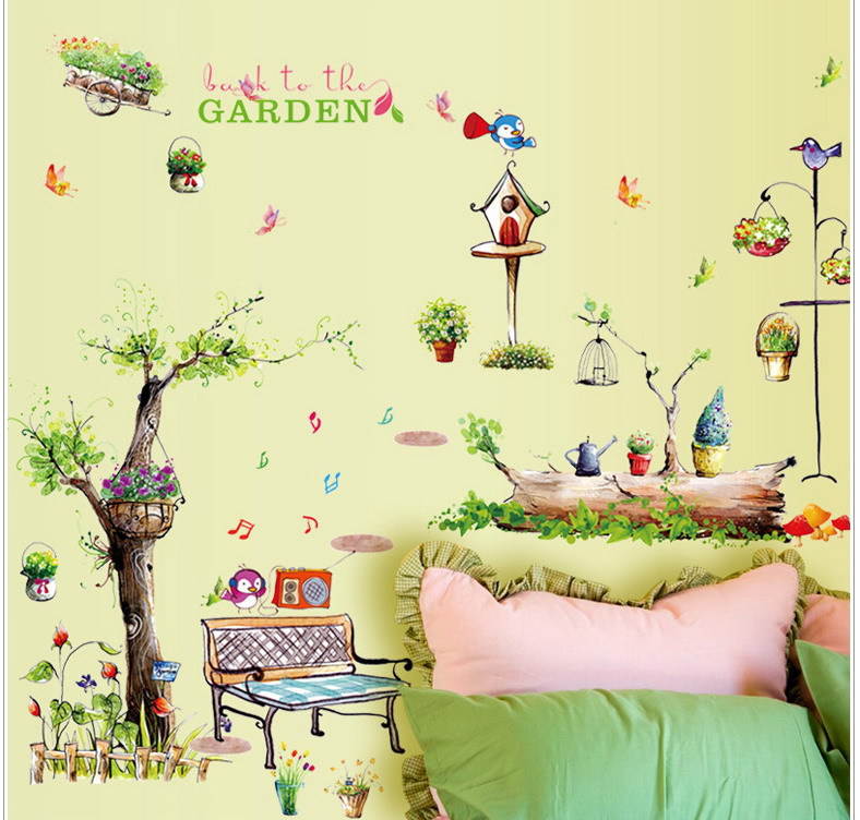 Decal dán tường vườn âm nhạc Kích thước dán Cao 65cm X Dài 130cm