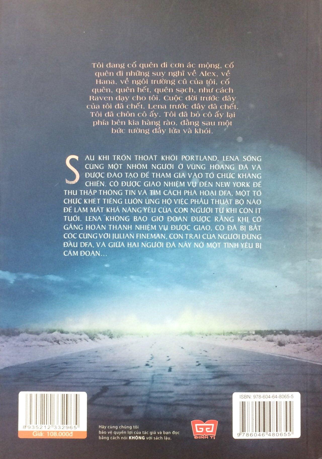 Tôi đang cố quên đi cơn ác mộng, cố quên đi những suy nghĩ về Alex, về Hana, về ngôi trường cũ của tôi, cố quên, quên hết, quên sạch, như cách Raven dạy cho tôi. Cuộc đời trước đây của tôi đã chết. Lena trước đây đã chết. Tôi đã chôn cô ấy. Tôi đã bỏ cô ấy lại phía bên kia hàng rào, đằng sau một bức tường đầy lửa và khói.