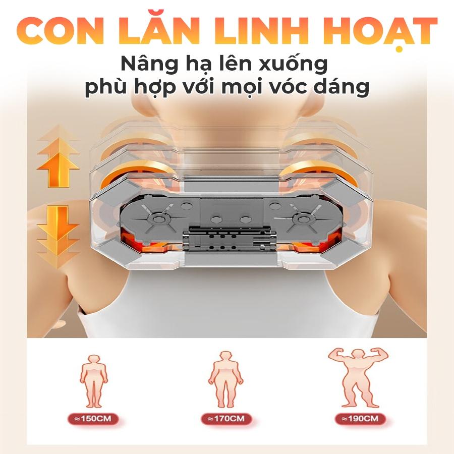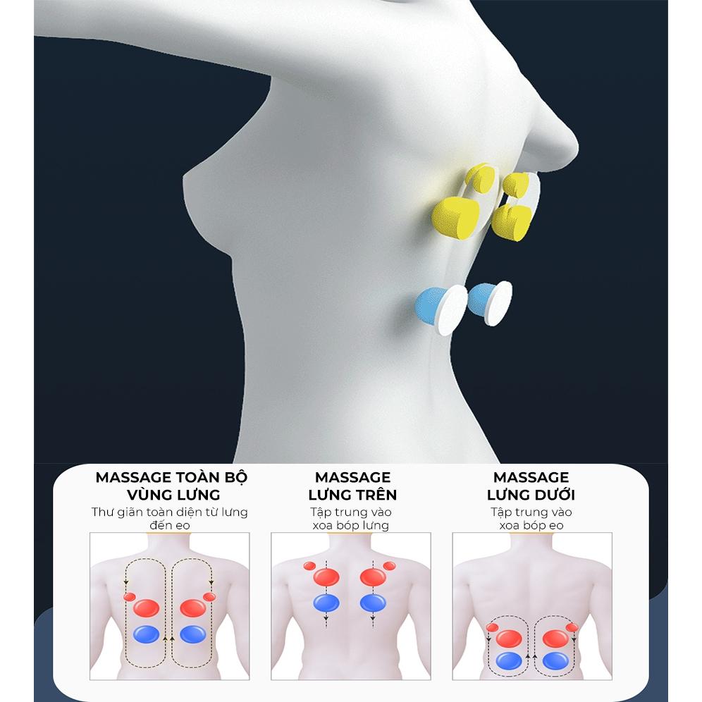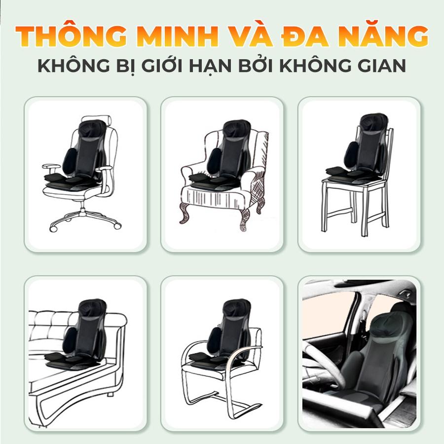 Với động cơ massage thiết kế 4D, sản phẩm tạo ra cảm giác mát xa chuyên nghiệp và độc đáo. Khả năng mát xa tại nhiều vị trí trên cơ thể như lưng, mông, cổ, vai, gáy, bắp tay và bắp chân đảm bảo sự chăm sóc toàn diện, đáp ứng mọi yêu cầu và nhu cầu chăm sóc sức khỏe.
