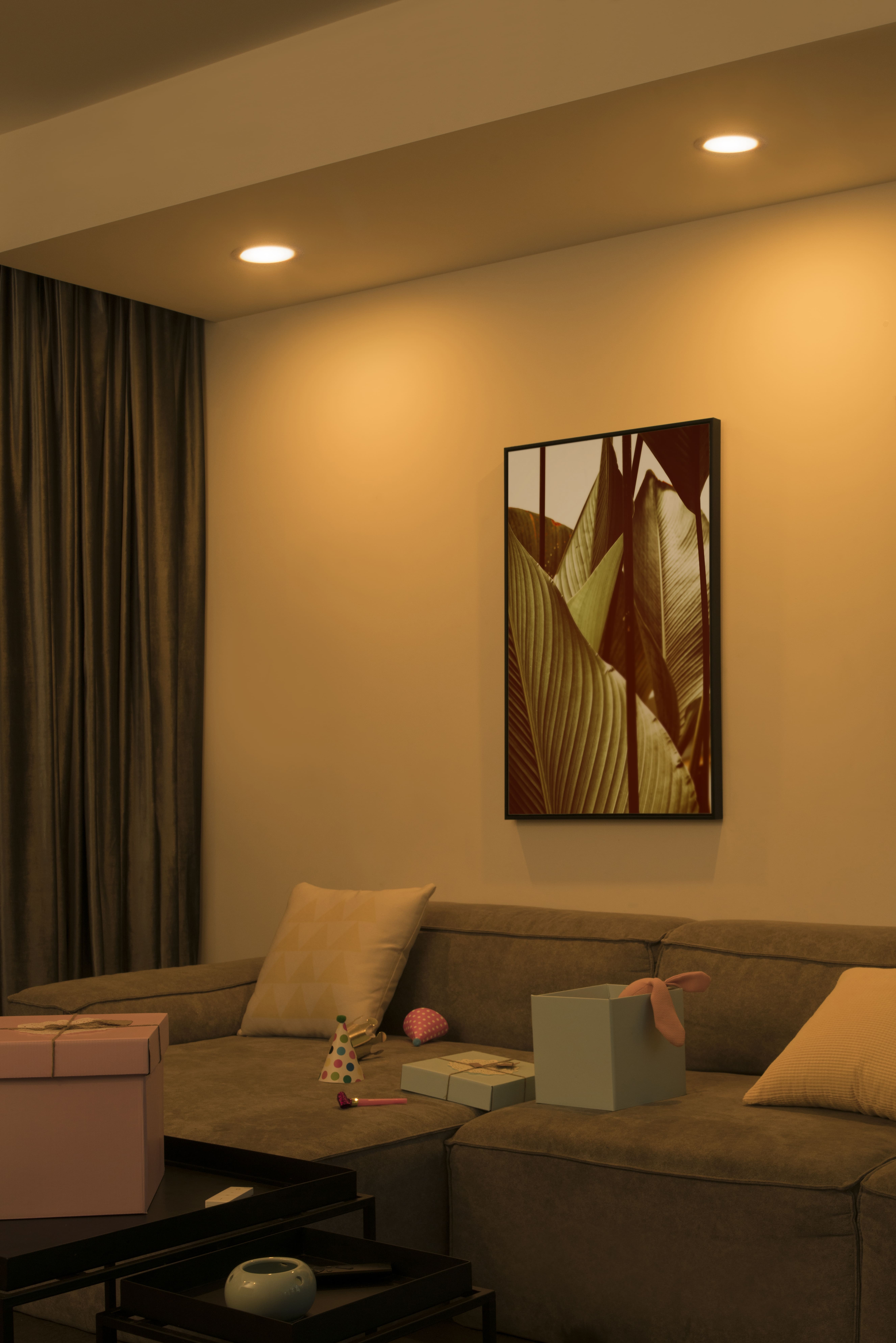 Hơn thế nữa, ánh sáng từ đèn LED Downlight Philips Hue Garnea sẽ là công cụ xoá bỏ những căng thẳng cuộc sống cho bạn. Với màu sắc đèn tràn đầy năng lượng từ màu vàng ấm áp sang màu trắng tỉnh táo. Đồng thời, bạn cũng có thể chỉnh sắc đèn tối cho giờ ngủ. Ánh sáng đèn sáng ấm vừa phải, không ảnh hưởng giấc ngủ của bạn và hỗ trợ cho bạn ngủ sâu hơn.