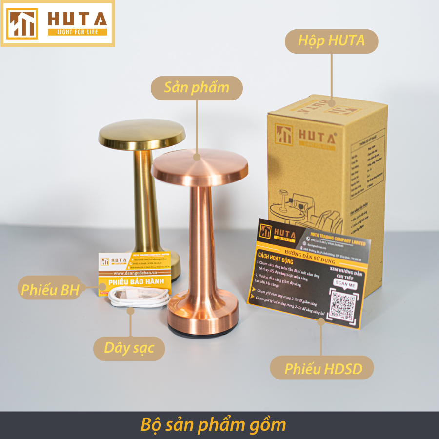Đèn Bàn Led Quầy Bar HUTA RESDIA2 Cảm Ứng Pin Sạc, Điều Chỉnh Ánh Sáng Trang Trí Nhà Hàng Quán Cà Phê Bàn Ăn Lounge Quán Bar 1. CHẾ ĐỘ BẢO HÀNH - 1 đổi