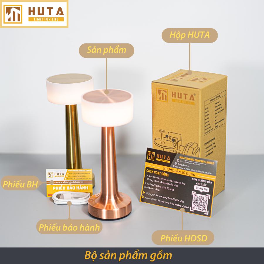 Đèn Bàn Led Quầy Bar, Quán Bar, Nhà Hàng| Cảm Ứng Tăng Giảm Độ Sáng, Pin Sạc Tích Điện| HUTA RESTRU