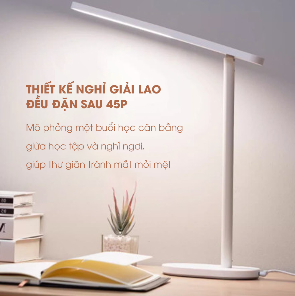 Đèn Bàn OPPLE LED Dim 3900K MIG2M 12.5W trắng- Chất Lượng Ánh Sáng Cao, Điều Chỉnh Độ Sáng Tùy Ý với ánh sáng êm dịu bảo vệ mắt, thiết kế nâng cấp quang học với ba lớp chống chói giúp ánh sáng đồng đều hơn, khả năng hiển thị màu cao R98, khả năng điều chỉnh độ sáng, không ánh sáng xanh, không nhấp nháy. Ngoài ra, đèn bàn OPPLE LED MIG2M còn được thiết kế với chức năng nghỉ giải lao đều đặn sau 45p, mô phỏng một buổi học giúp cân bằng giữa học tập và nghỉ ngơi, giúp thư giãn tránh mắt mỏi mệt. THÔNG SỐ KỸ THUẬT - 3 chế độ màu ánh sáng: 3900K, 2900K, 4800K - Công suất: 12.5w - Quang thông: 800lm