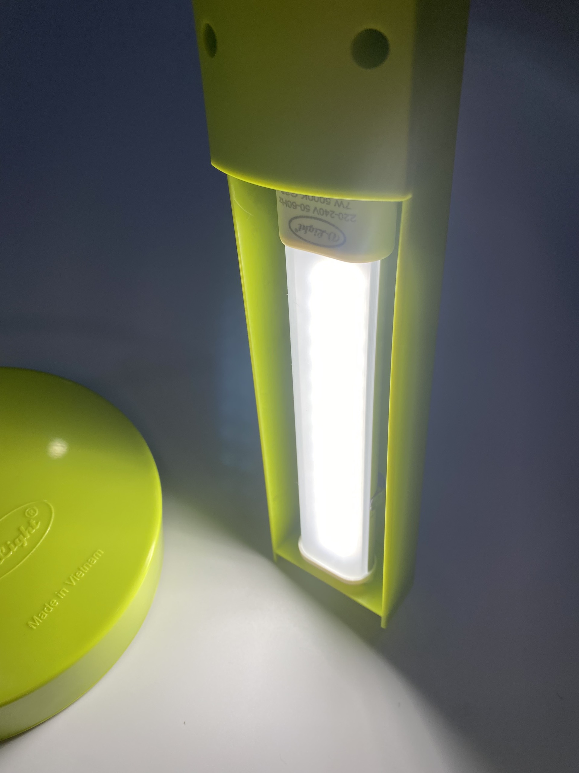 Đèn cắm điện trực tiếp, điện áp: 220V/50Hz Màu ánh sáng: Trắng/ Vàng Độ rọi trên mặt bàn: > 700 lux Ánh sáng liên tục không nhấp nháy, không gây mỏi mắt bảo vệ thị