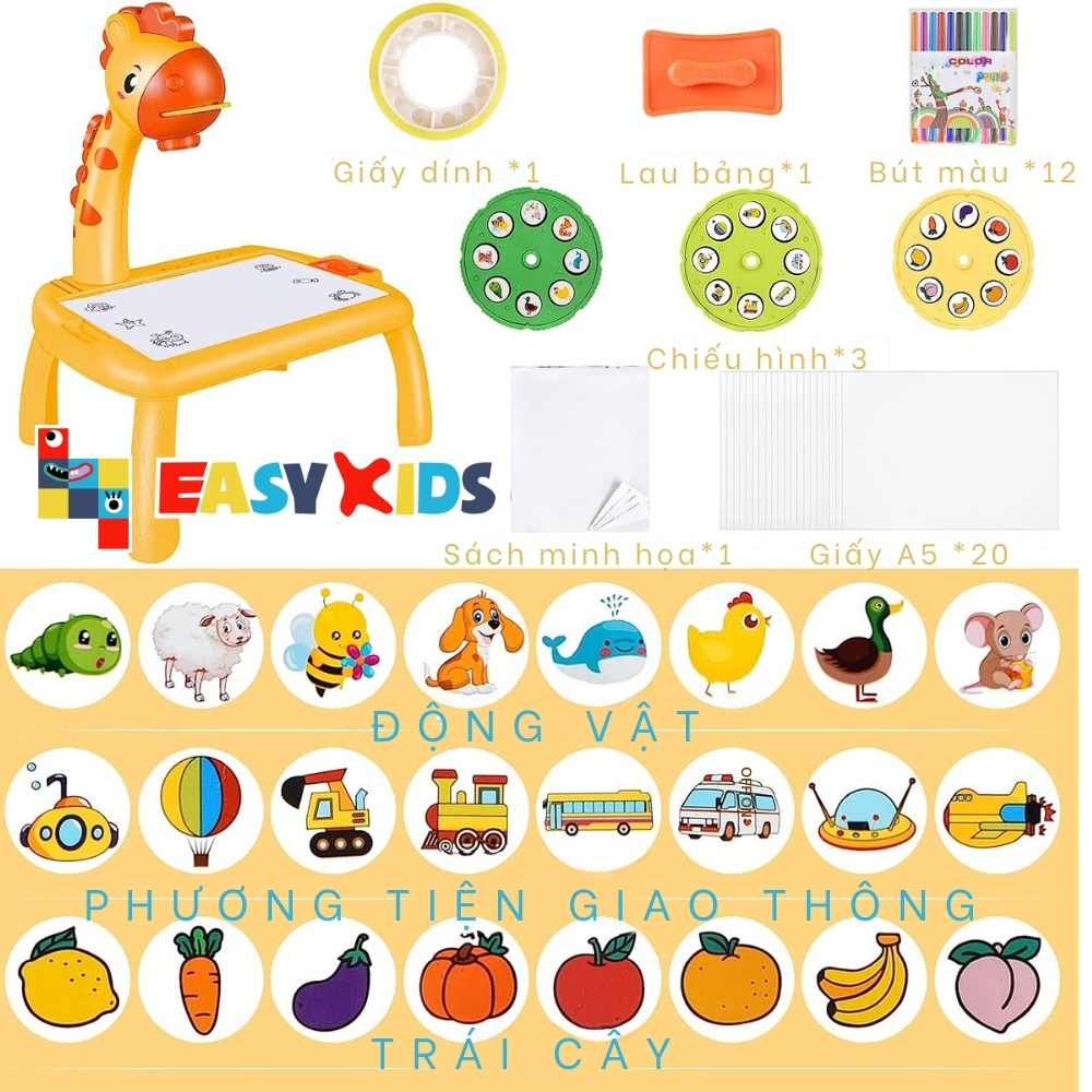 Đèn Chiếu Hình Tập Vẽ, Bàn Vẽ Thông Minh Cho Bé Đèn Vẽ Hình Vẽ Tranh Máy Chiếu Có Nhạc Hình Hươu   GIỚI THIỆU SẢN PHẨM: Bạn đang tìm kiếm một món quà giáo dục và sáng tạo cho bé yêu của mình? Hãy khám phá Bàn Vẽ Cho Bé Đèn Chiếu Hình Tập Vẽ! Bàn Vẽ Cho Bé Đèn Chiếu Hình Tập Vẽ: Sự Kết Hợp Hoàn Hảo Giữa Giáo Dục và Giải Trí Bàn vẽ cho bé với đèn chiếu hình tập vẽ là sản phẩm mang tính sáng tạo và thú vị, giúp trẻ phát triển tư duy và kỹ năng vẽ một cách tự nhiên. Đèn Vẽ Hình Cho Bé: Đèn chiếu hình tập vẽ giúp bé dễ dàng nhìn thấy mẫu vẽ và tập trung hơn vào quá trình vẽ. Điều này giúp bé phát triển khả năng quan sát và tái tạo hình ảnh một cách chính xác. Bàn Vẽ Có Đèn Chiếu Sáng: Bàn vẽ được trang bị đèn chiếu sáng giúp bé có thể vẽ vào cả ban ngày lẫn ban đêm một cách dễ dàng và tiện lợi. Máy Chiếu Hình Hươu và Nhạc: Sản phẩm đi kèm với máy chiếu hình hươu vui nhộn và âm nhạc dễ thương, tạo ra một không gian vui vẻ và sáng tạo cho bé. Thiết Kế Thông Minh và An Toàn: Bàn vẽ được thiết kế với chất liệu an toàn cho bé và các góc cạnh được làm mềm mại, đảm bảo an toàn cho trẻ khi sử dụng. Khám phá ngay Bàn Vẽ Cho Bé Đèn Chiếu Hình Tập Vẽ để mang lại niềm vui và sự sáng tạo cho bé yêu của bạn! THÔNG TIN SẢN PHẨM: