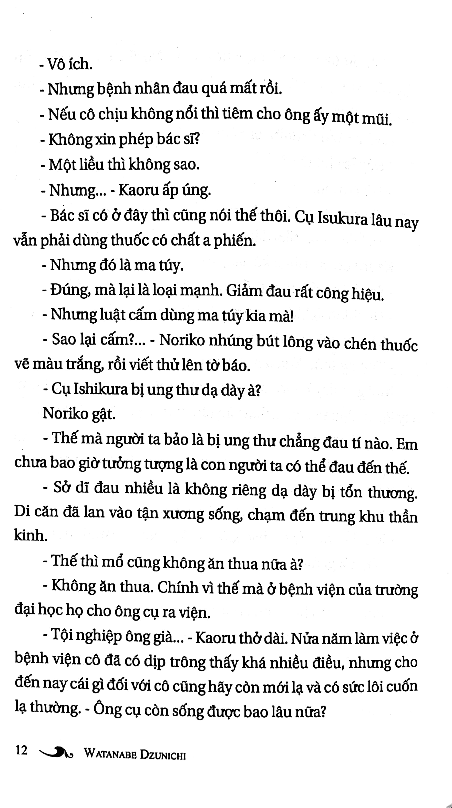 Đèn Không Hắt Bóng Tinh hoa văn học của nhân loại nào cũng cần được khám phá và tái khám phá. Mỗi tác phẩm lớn là một sự kỳ diệu và mỗi lần ta tìm đến là thực hiện những cuộc phiêu lưu hoan lạc. Đến với tiểu thuyết Đèn Không Hắt Bóng là chúng ta đang bước vào cánh cửa thứ nhất của Tủ sách tinh hoa văn học - cánh cửa với những tác phẩm được dịch trọn vẹn và giới thiệu cả tác giả lẫn tác phẩm trong bối cảnh văn hoá với những đặc điểm thiết yếu - cánh cửa Kiệt Tác. Tiểu thuyết Đèn Không Hắt Bóng là tác phẩm nổi tiếng nhất của Watanabe Dzunuchi được viết trong giai đoạn khoảng năm 1971. Đèn Không Hắt Bóng không đơn thuần kể về đời sống bệnh viện. Nhìn ở góc độ khác, nó là câu chuyện tình yêu lạnh lùng, bí ẩn và đau đớn. Mối quan hệ giữa Noriko và bác sĩ Naoê phải chăng là tình yêu một chiều? Đứng bên cạnh vị bác sĩ tài hoa, hình ảnh của Noriko khá lặng lẽ. Yêu Naoê, tự nguyện gắn bó với anh, cô vẫn phải chứng kiến hàng loạt mối quan hệ bất thường của Naoê với những phụ nữ khác, từ vợ và con gái của bác sĩ viện trưởng, cô gái quán bar, cho đến nàng ca sĩ ngôi sao… Nhưng đau khổ hơn hết, cô nhận ra Naoê là một pháo đài riêng, không cho cô thâm nhập, ngay cả những giây phút gần gũi nhất cả về thân xác lẫn tình cảm. Chỉ đến khi Naoê mất đi, bức màn bí mật mới được vén lên. Giữa bao nhiêu phụ nữ vây quanh, Naoê chỉ yêu một mình Noriko. Cô chính là mảnh gương cuộc đời để anh soi vào, là chỗ bấu víu duy nhất trong những cơn đau đớn tuyệt vọng vì cái chết gần kề… Nhưng vì kiêu hãnh và xót thương, anh không bao giờ phơi bày sự thật với cô. Tình yêu bền bỉ của Noriko đã được đền đáp, dù muộn mằn…