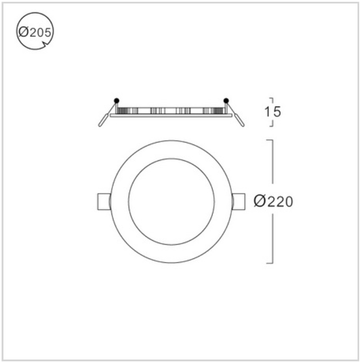 LED Downlight AT04L 90/9W Model: D AT04L 90/9W Wattage: 9W Voltage: 220V/50-60Hz Luminous Flux: 650lm / 630lm Color temperature Dimensions: (118x40)mm Mounting diameter: 90 mm