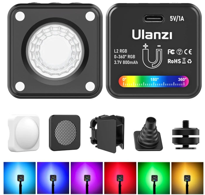 ULANZI L2 RGB COB Video Light Mini Cube Lights, LED Camera Light 360° Full Color Portable Photography Video Lighting, 800mAh Rechargeable & Magnetic Designs and 11 Dynamic Light Effects * Ulanzi L2 có 2 phiên