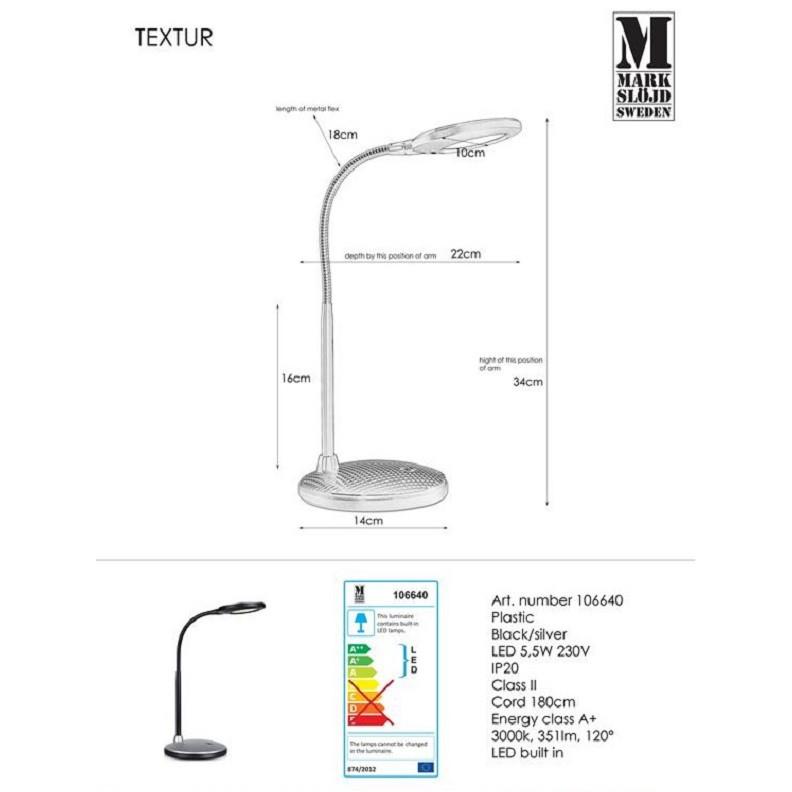 Thông tin Đèn led để bàn học, đèn làm việc, đọc sách Textur, thương hiệu Markslojd, Thụy Điển bảo vệ mắt, trợ sáng: