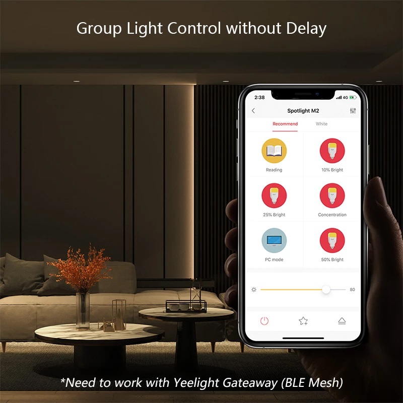 - Kết nối Bluetooth 4.2 do đó cần có Yeelight Mesh Gateway Bluetooth ► ► Lưu ý: Nếu bạn muốn kết nối đèn với bộ Apple homekit, trước tiên bạn phải kết nối với bộ trung tâm Yeelight Bluetooth Mesh Gateway