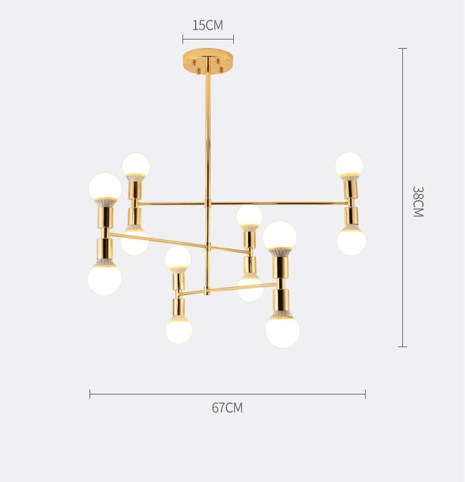 Đèn thả chùm là sản phẩm đèn trang trí nội thất cho không gian phòng khách, phòng ngủ đang được yêu thích nhất hiện nay. Ngoài tác dụng chiếu sáng thì các mẫu đèn chùm đẹp còn giúp tạo ra một không gian sang trọng, ấn tượng, đẳng cấp, thể hiện gu thẩm mỹ của gia chủ. Đèm chùm trang trí theo phong cách châu Âu hiện đại, tinh tế, bắt mắt  Chất liệu: khung sắt sơn tĩnh điện cao cấp Đèn đã bao gồm 12 bóng led 3W Thích hợp với mọi không gian Ứng dụng: nhà hàng, khách sạn, shop quần áo, phòng khách, phòng bếp, phòng ngủ, Kích thước sản phẩm: 673815(cm) Sản phẩm gồm 2 loại : Thân đen và thân vàng Thiết kế của đèn dễ lắp đặt, dễ sử dụng, giảm thiểu thời gian thi công. Bật/ Tắt tức thì, ánh sáng không rung, không nháy. Tuổi thọ đèn cao, thân thiện với môi trường, không chứa chất độc hại, có thể tái chế.