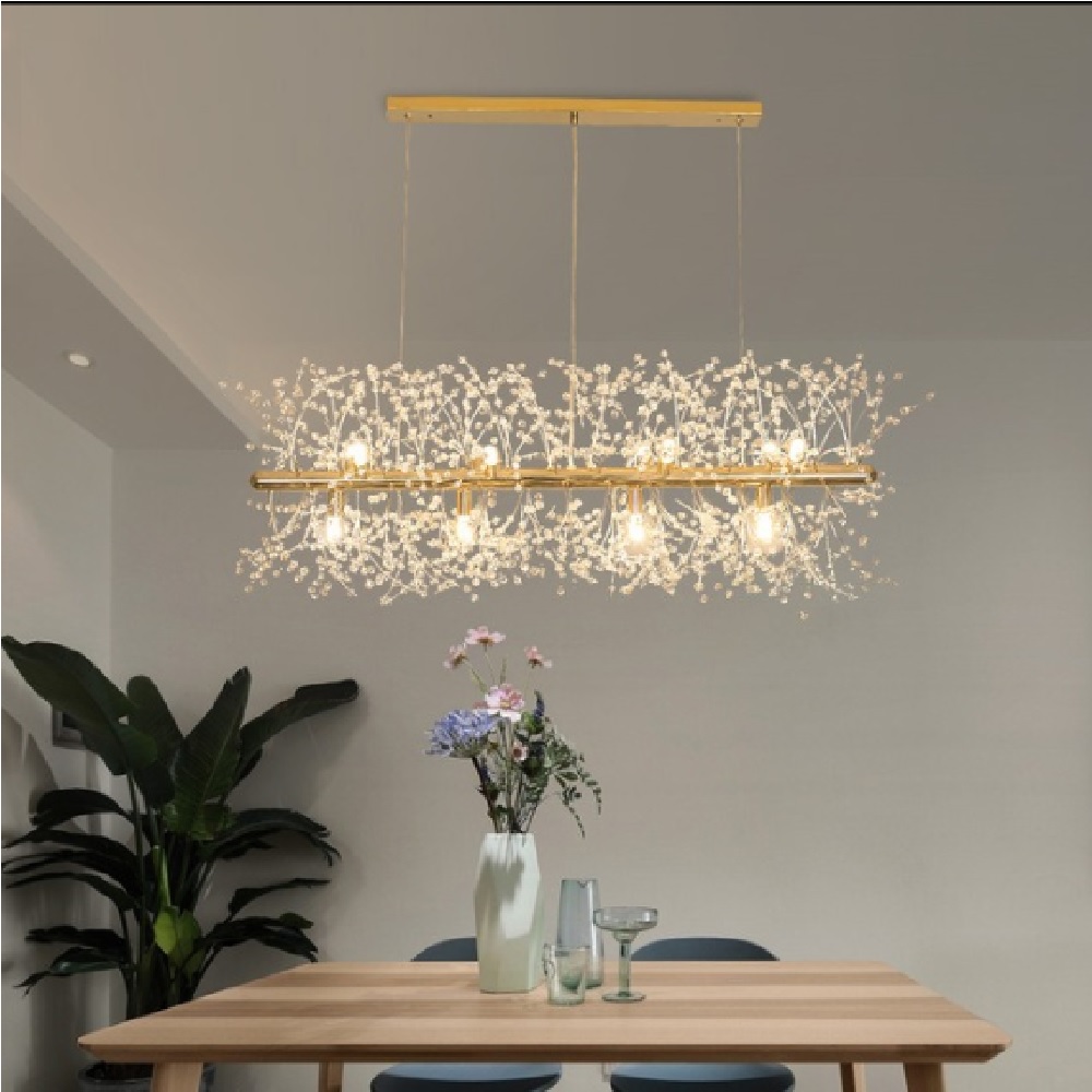 Ứng dụng: trang trí phòng khách, phòng ăn, khu vực cầu thang thông tầng, sảnh nhà hàng, khách sạn mang đến không gian sáng tạo, sang trọng và thêm phần tinh tế, hiện đại.