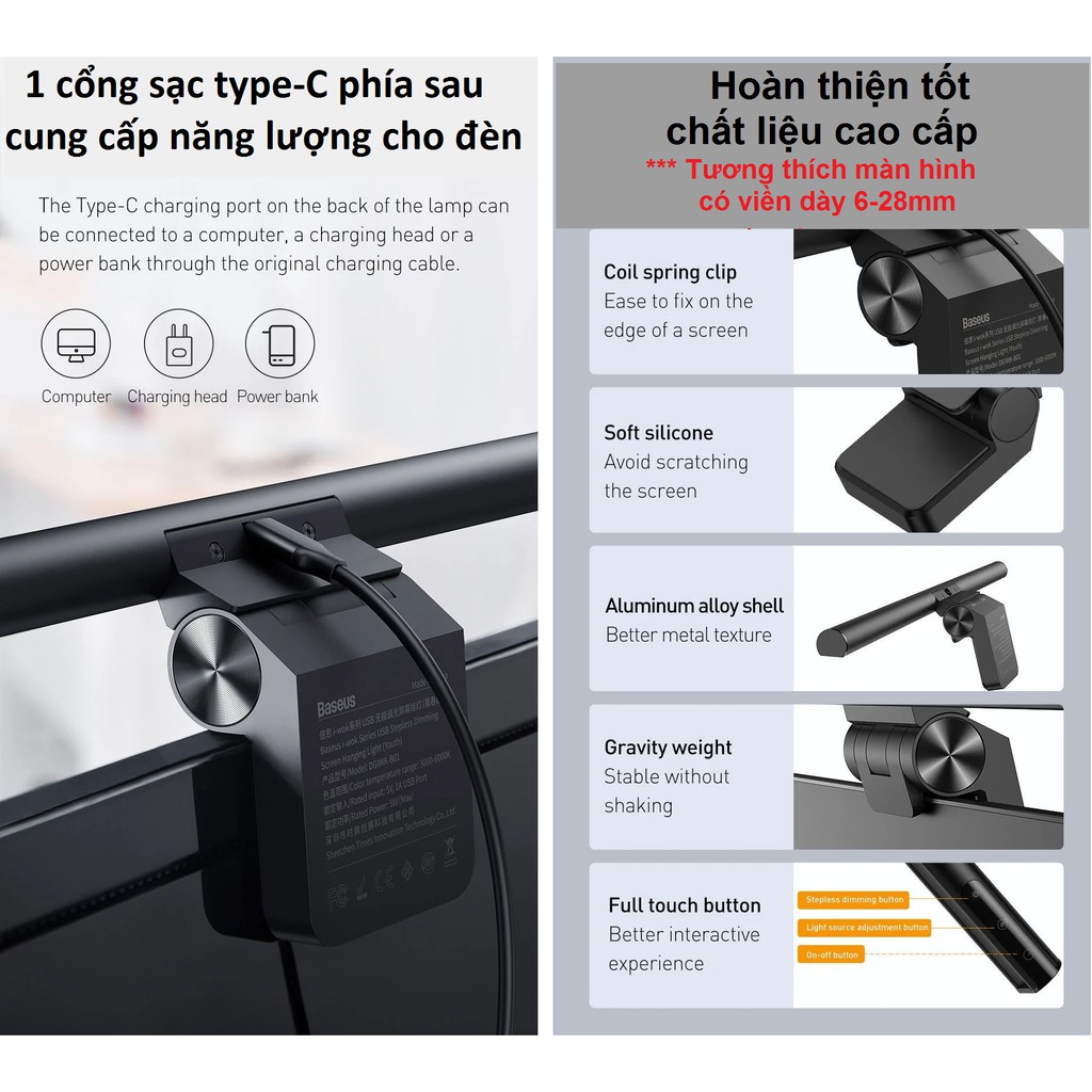 ❥ Gói hàng bao gồm: 1 * Đèn LED treo màn hình 1 * Cáp nguồn cổng USB-C ❥ Chi tiết sản phẩm: Thương hiệu: BASEUS Xuất xứ: Trung Quốc (Xuất xứ) Loại sản phẩm:
