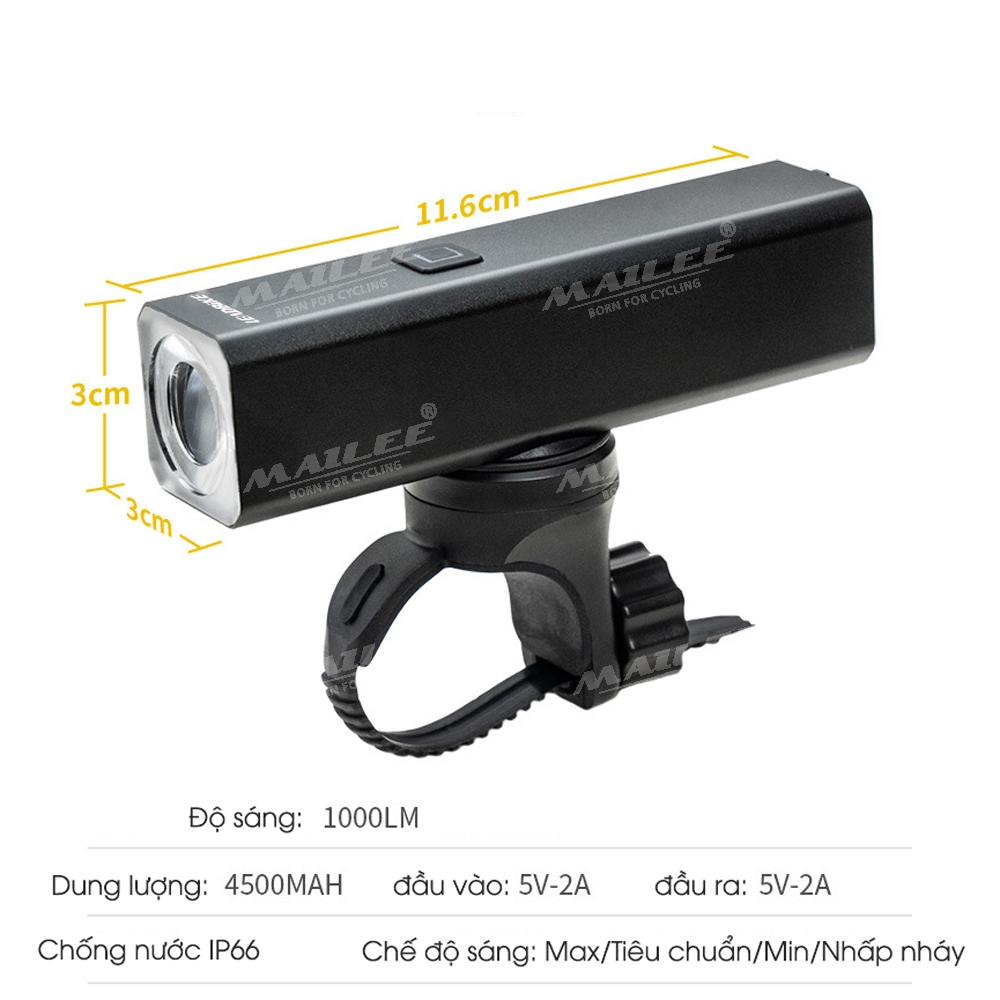 Đèn xe đạp LD-86A siêu sáng 1000 lumen, pin dung lượng cao 4500mAh, chất liệu vỏ nhôm, chống nước IP66, có hỗ trợ pad gắn treo (2 phiên bản tùy chọn) - Mai Lee Đèn trước đa năng cho xe đạp Ống kính quang học chuyên nghiệp với góc chiếu rộng và tầm nhìn cao hơn Thông số sản phẩm
