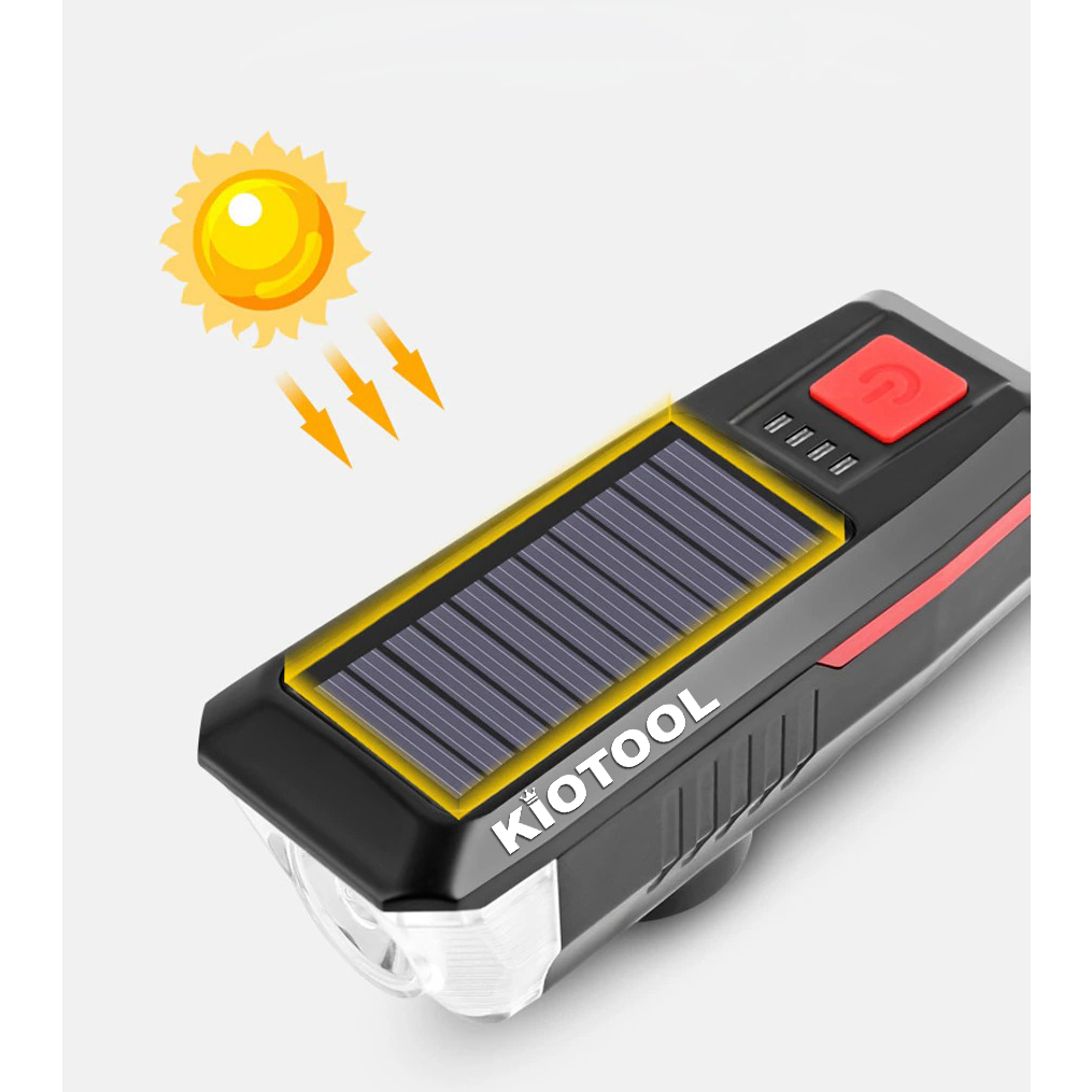 ✨Đèn xe đạp năng lượng mặt trời Kiotool có còi chống nước 3 chế độ sáng