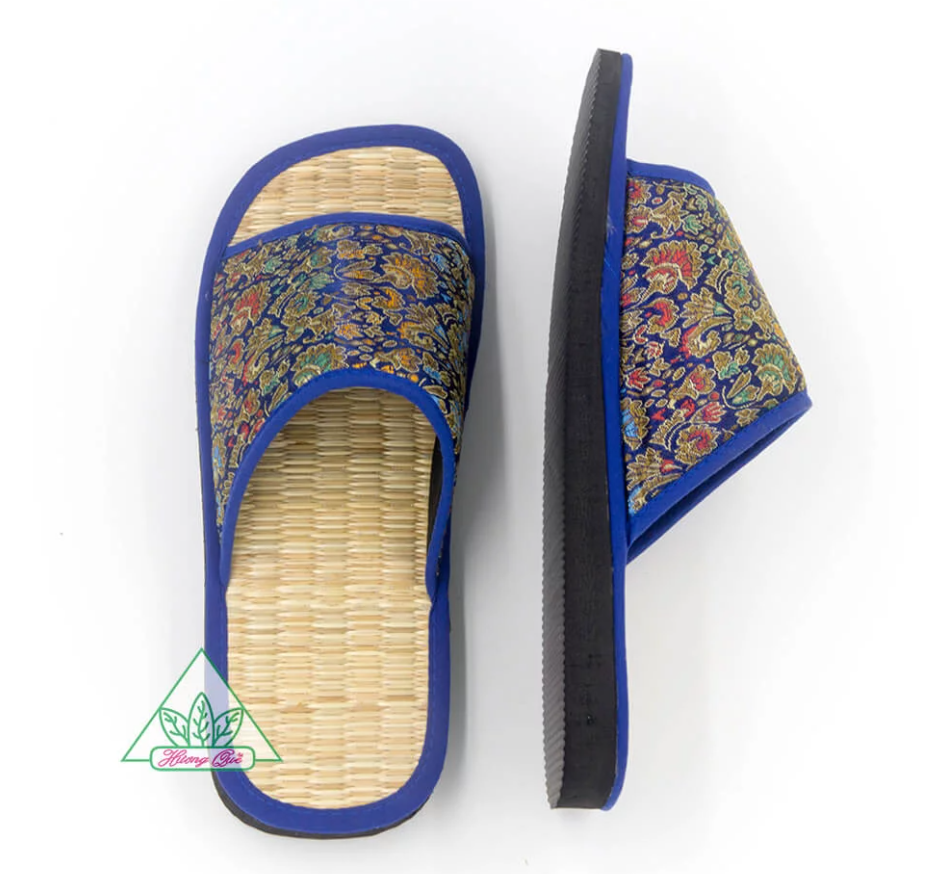 ✨Dép chiếu Hương Quế DCQ-50 làm từ lụa tơ tằm - vải cotton - lớp đế cao su xốp cho đôi chân thơm - mát và khô thoáng - Xanh