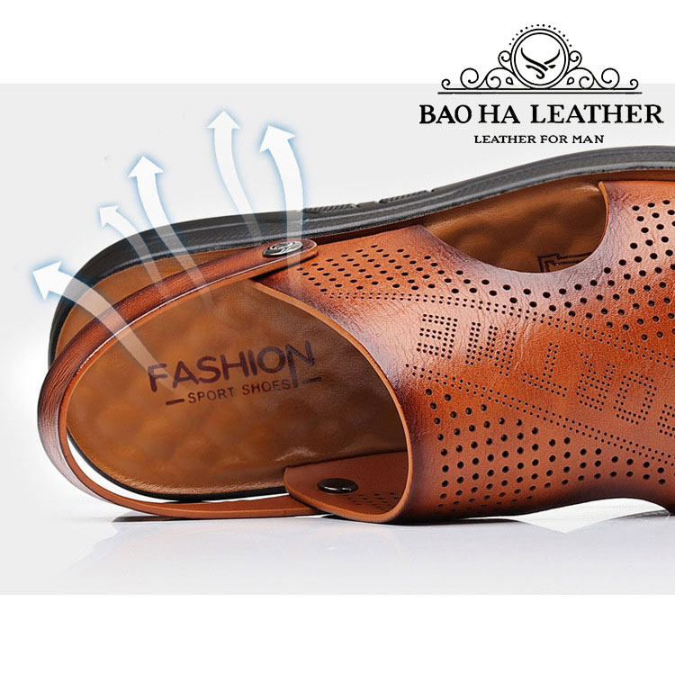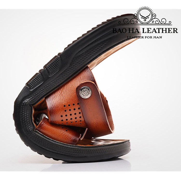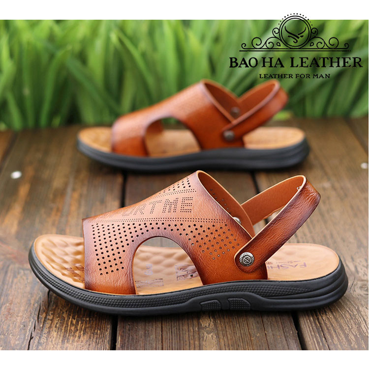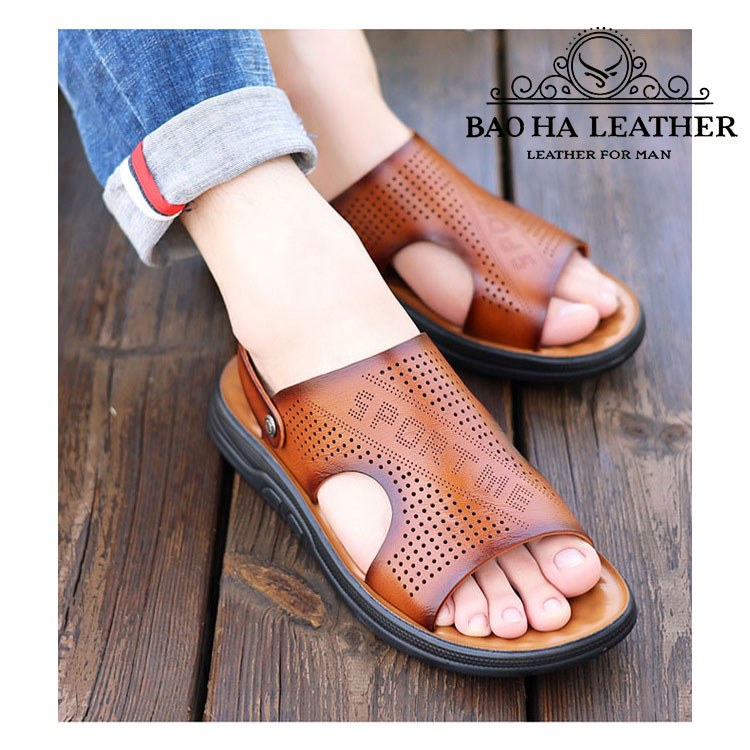 ✨Dép da nam quai ngang đục lỗ thoáng khí BHD888
