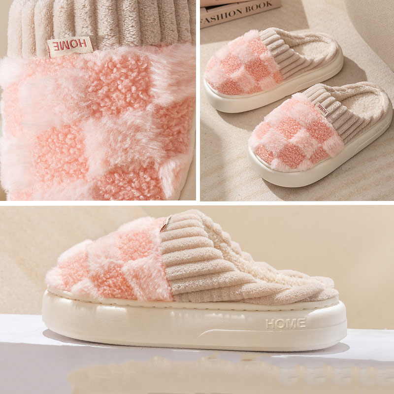 ✨Dép Lông Đi Trong Nhà, Dép Lông Bít Mũi, Dép Bông Caro Mã DP110