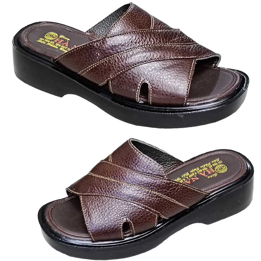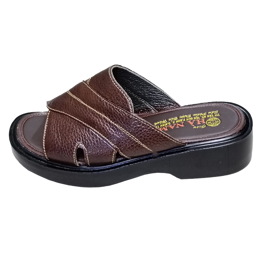 Dép Nam Quai Ngang Da Bò Thật HÀ NAM Đế Cao Dành Cho Người Thấp DN2042