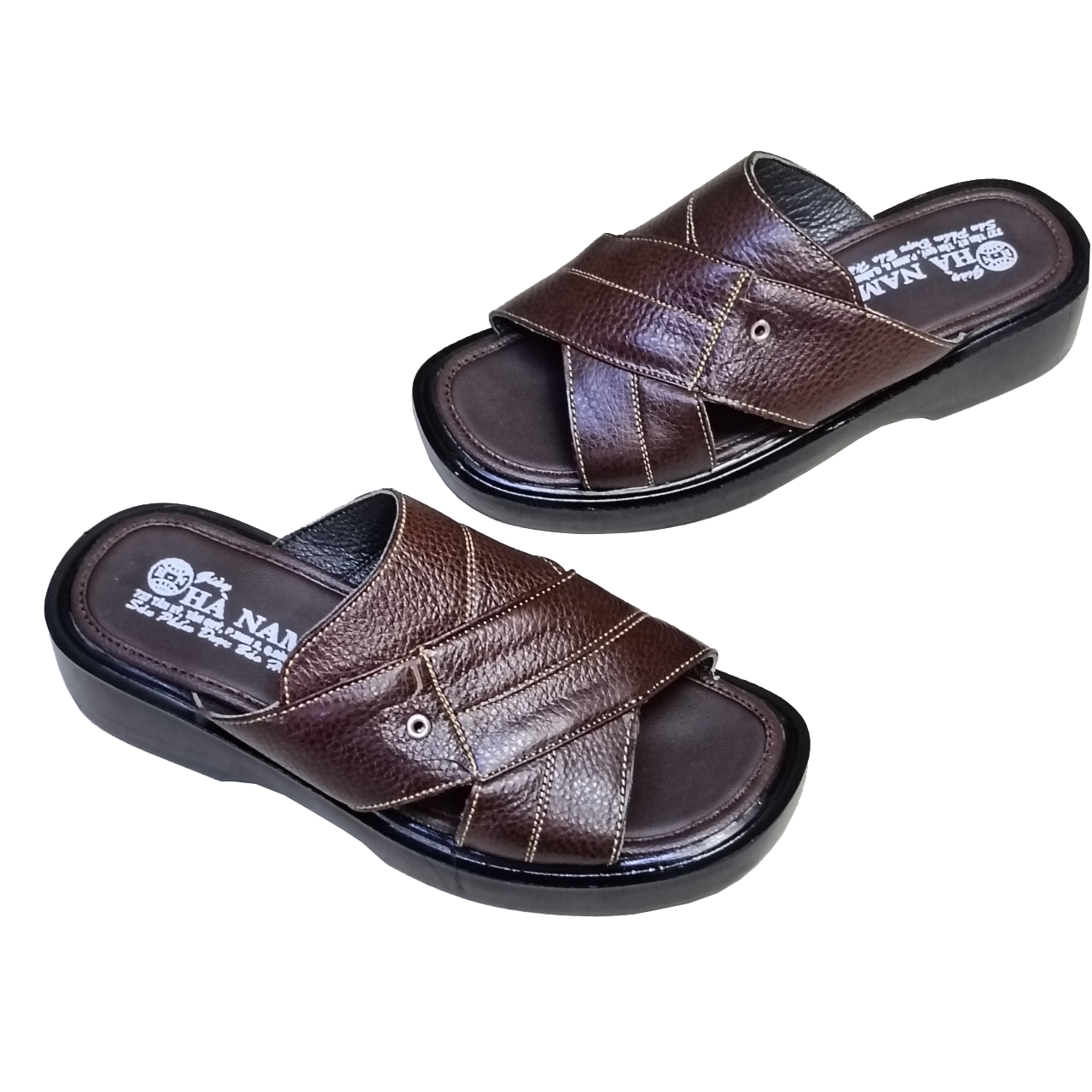 Dép Nam Quai Ngang Da Bò Thật HÀ NAM Đế Cao Dành Cho Người Thấp DN2042 - Giày Dép Được Gia Công Tại Xưởng Shop - Hoàn Trả Tiền 100% Hoặc 1 Đổi 1 Nếu