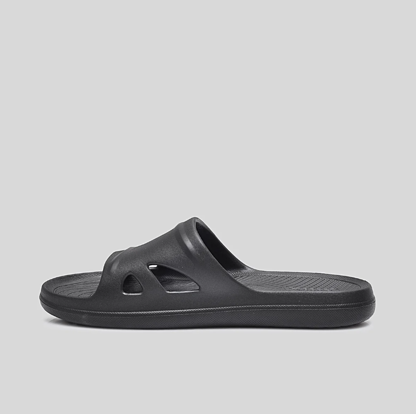 Thiết kế: • Dạng slide ôm chân, mang vào và tháo ra nhanh chóng. • Khe thoáng khí hai bên tăng độ thông thoáng, hạn chế đọng nước.