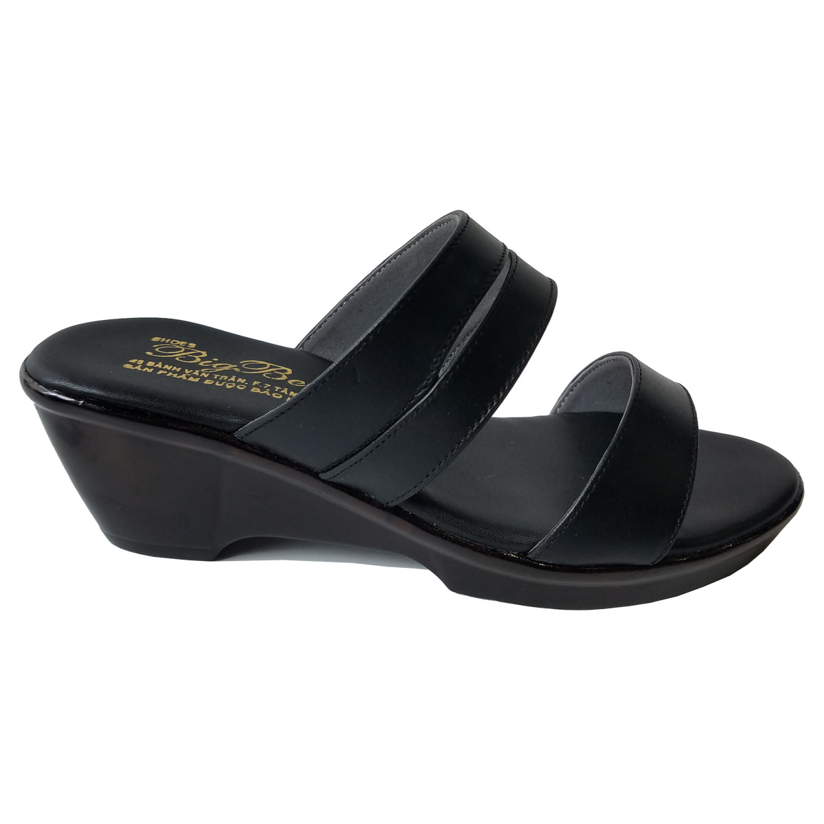 Dép nữ đế xuồng 5cm da bò thật