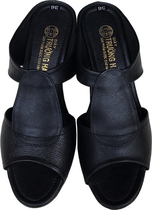 ✨Dép nữ đế xuồng Trường Hải cao 6.5cm quai dép da bò thật không bong tróc đế cao su không trơn thời trang cao cấp DXN0822