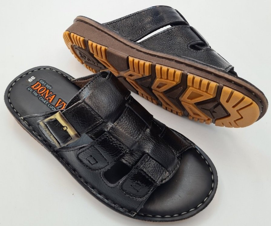 - Dép Nam với chất liệu da bò bền đẹp kết hợp đế cao su êm nhẹ chống trơn trượt giúp bạn Nam luôn thoải mái, tự tin khi đi chơi, dạo phố, đi làm nơi công sở hay đi dự tiệc.
