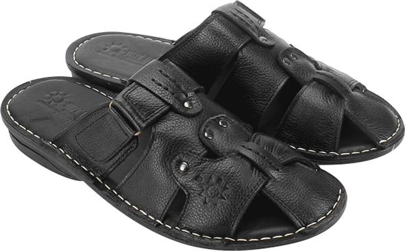 Dép nam Huy hoàng da bò quai hậu màu đen 7146